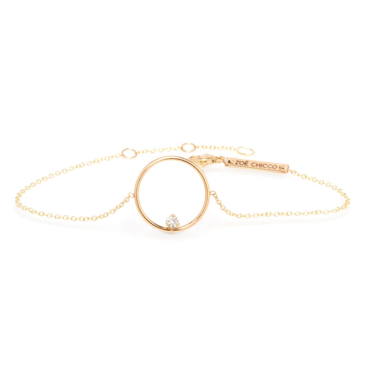 14k Gold medium circle bracelet with a prong-set White Diamond inside the circle