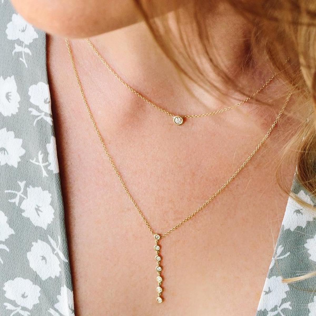 14k gold chain necklace with a single floating diamond pendant