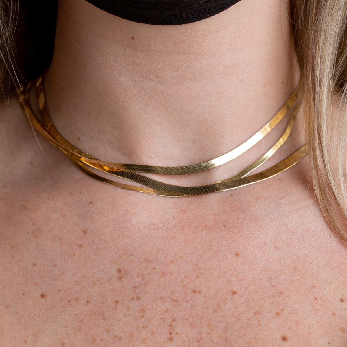 The smallest of our 14K yellow gold herringbone chain necklaces