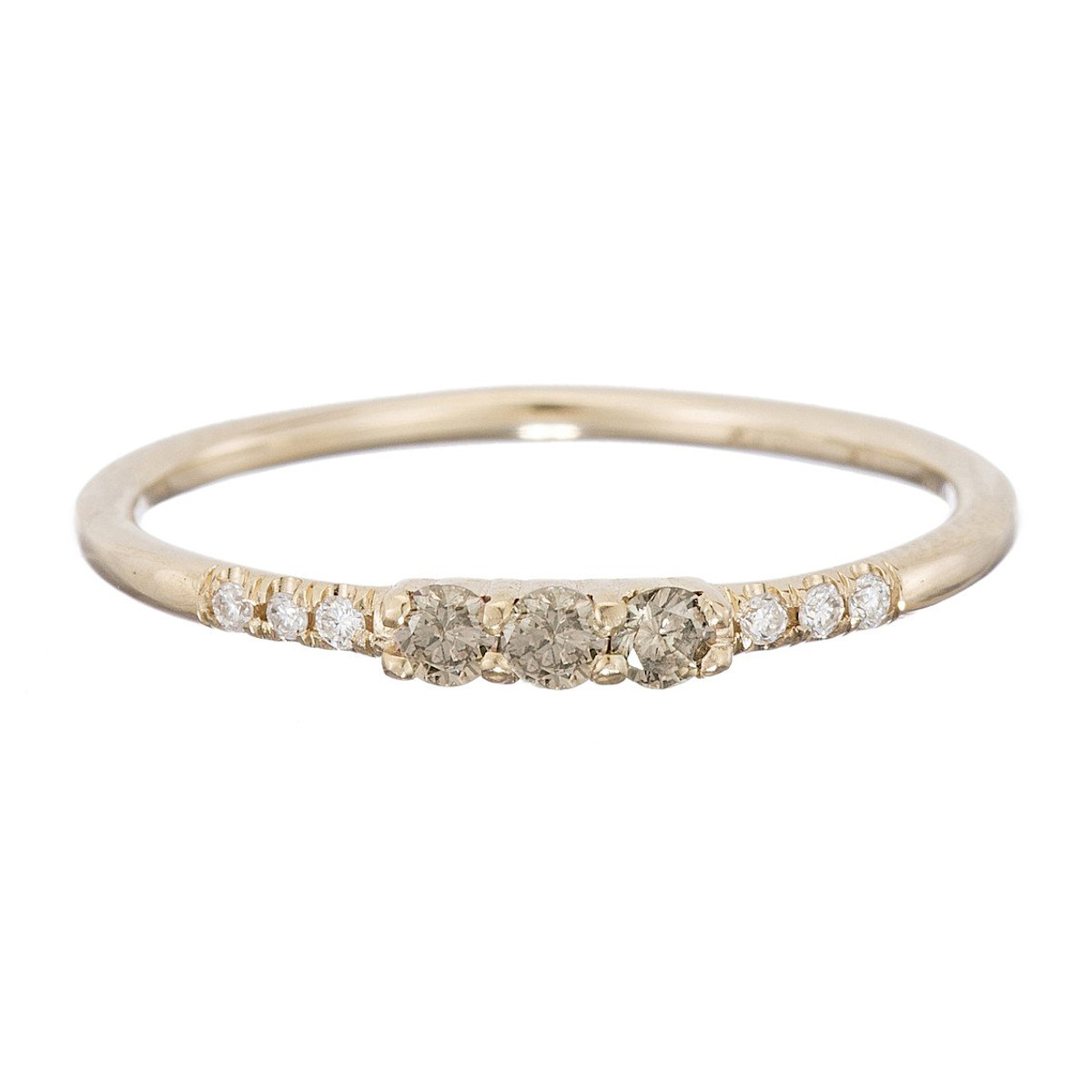 Three sparkly champagne diamonds, simply set and flanked by our signature equilibrium pave setting. We love the warmth of champagne diamonds and the ease of wearing this piece. She plays so well with anyone, and on her own, feels dainty yet luxurious. A true JKD classic.