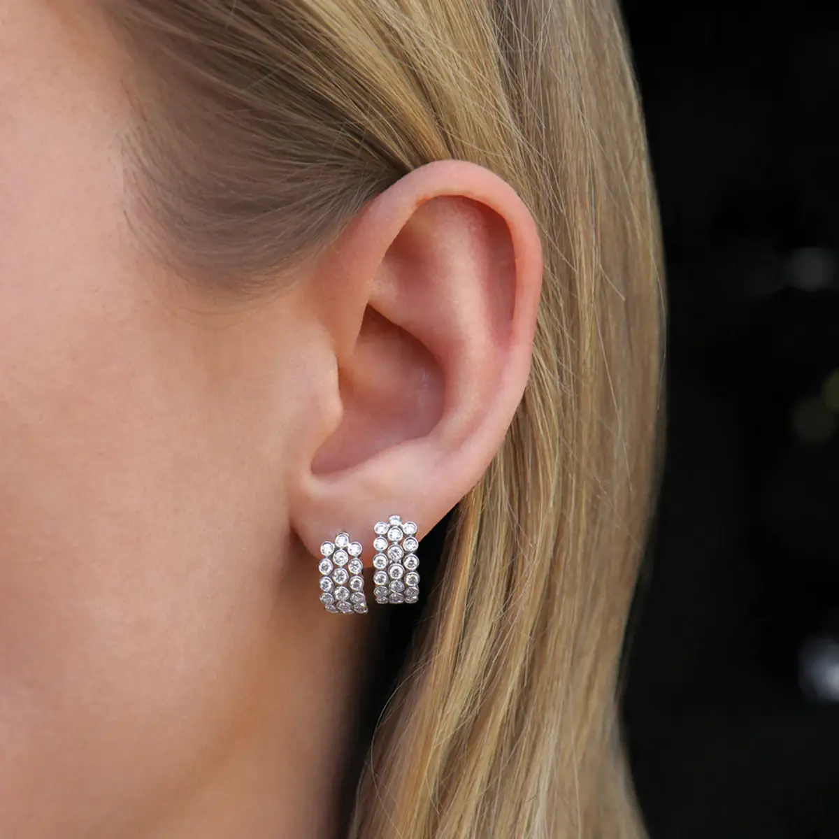 3 Row Diamond Bezel Huggies in 18K Yellow Gold