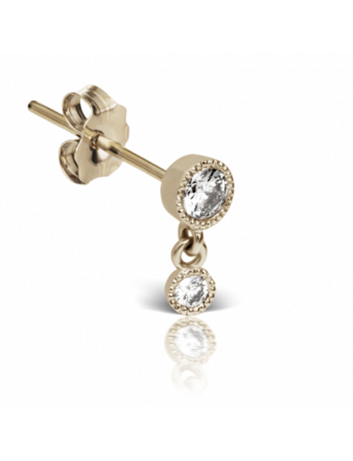 2mm diamond dangling below the 3mm diamond. A piece with pristine sparkle and a bit of movement.