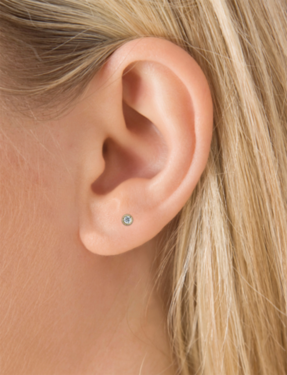 Includes a 14k gold traditional friction backing (as shown) in white gold.