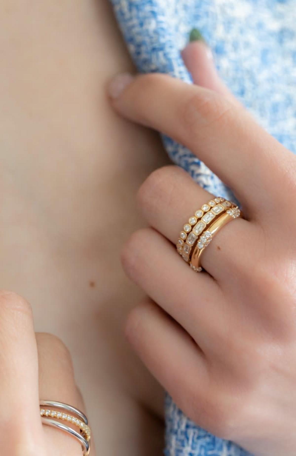 0.42ctw white diamonds, set in a 2.8mm band of 14k gold