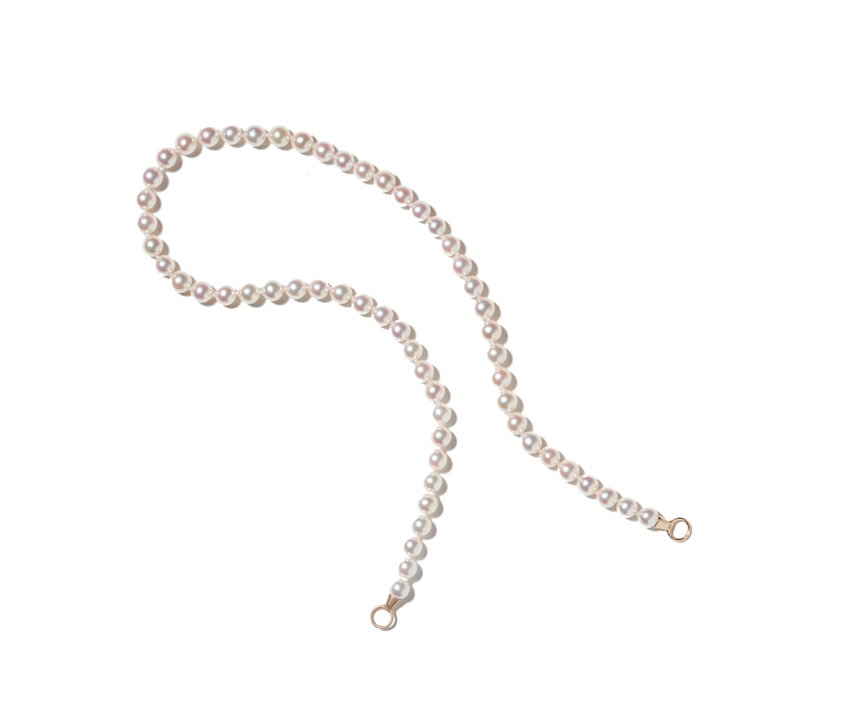 The Akoya Pearl Strand with Yellow Gold Loops features blue string for a pop of color. Marla Aaron can refresh your pearls by adding color and loop ends to hold locks!