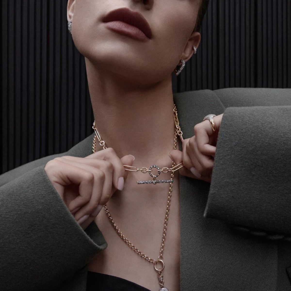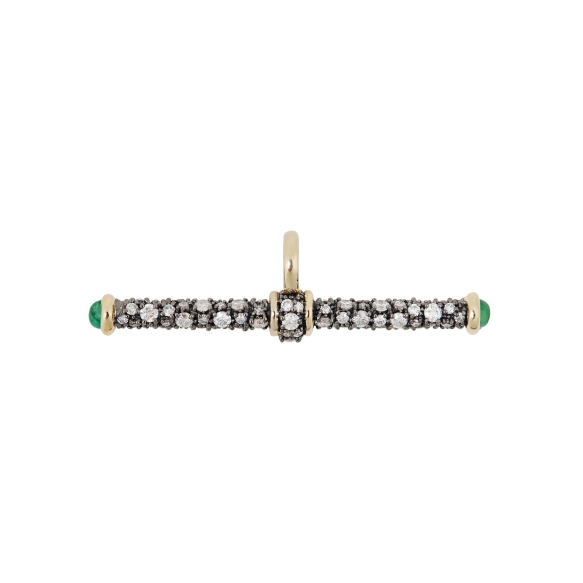 A striking blend of vintage charm and vibrant color, the Antique Finish Diamond T Bar from M.Flynn features a textured antique finish accented by brilliant diamonds and rich emerald gemstones. This sculptural pendant adds elegant depth and a pop of green to any look. Perfect for layering or wearing solo, it offers timeless style with a modern edge. Discover handcrafted artistry at M.Flynn.