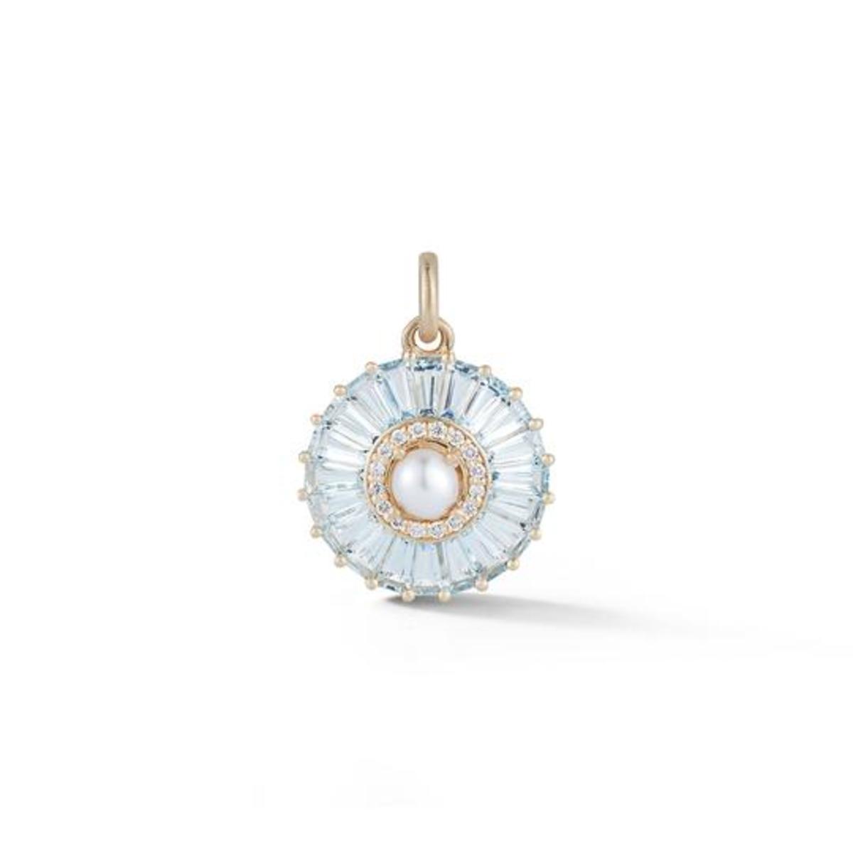 - Composition: 14K Yellow Gold, Pearl, Diamond, Aquamarine