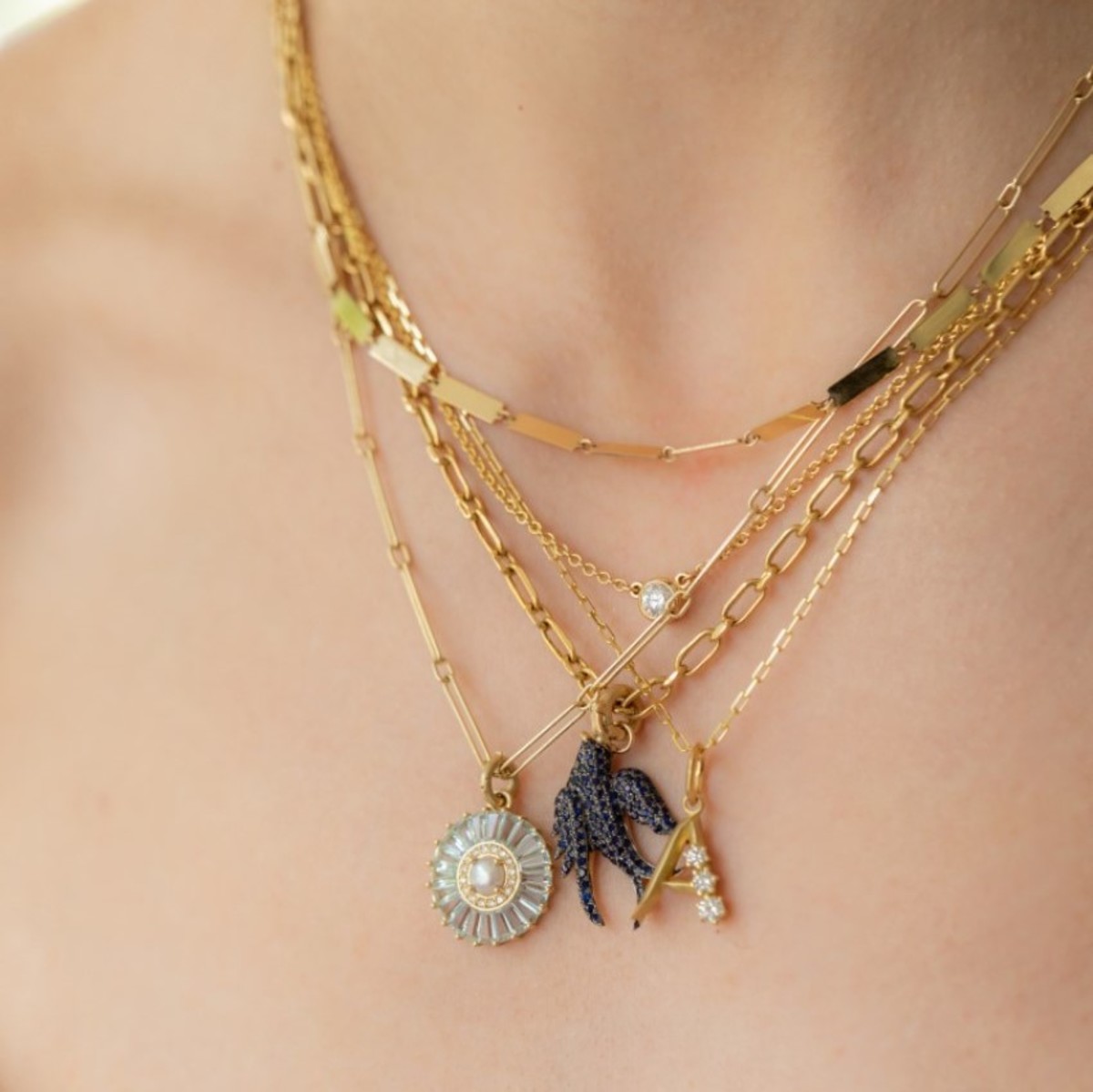 Inspired by heirloom pieces found at antique fairs and jewelry shows across the world, Storrow celebrates nostalgia and a romantic Victorian aesthetic. All of the charms have a clip bail so they can worn a variety of ways – wear alone as a pendant or add to an existing link chain. They look great grouped together.