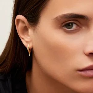 The Aria U Huggie Hoops by Melissa Kaye are an ultra-comfortable and modern take on a huggie. We love how the elongated silhouette maximizes the amount of front facing diamonds!