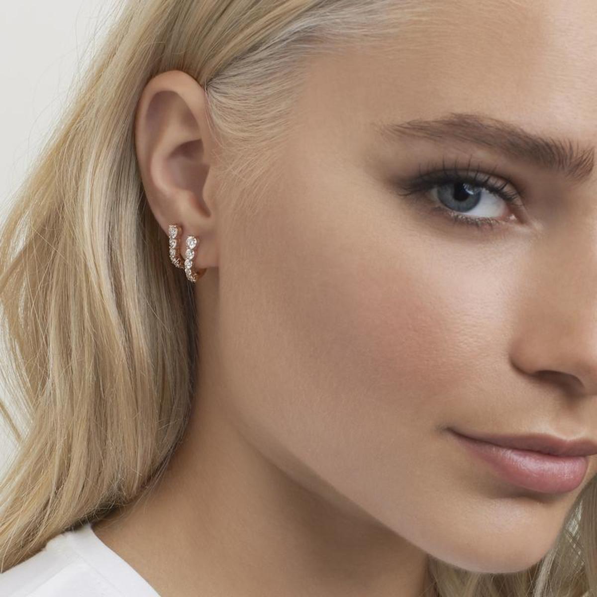 The Aria U Huggie Hoops by Melissa Kaye are an ultra-comfortable and modern take on a huggie. We love how the elongated silhouette maximizes the amount of front facing diamonds!
