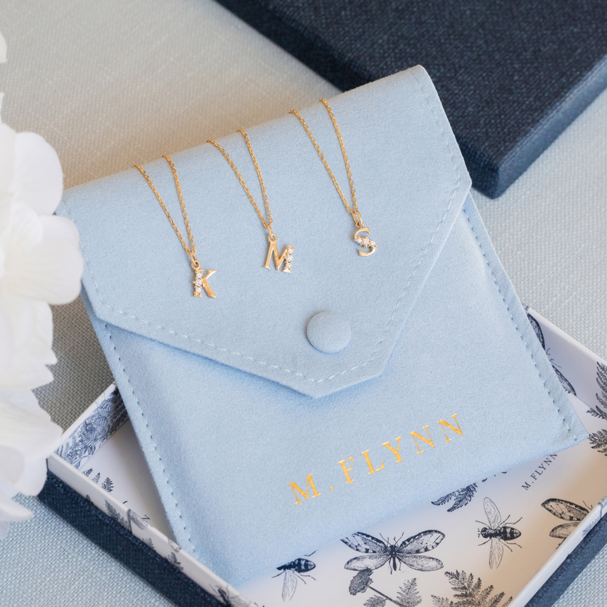 The Ava Diamond Dangle Initial Necklace is one of our staples here at M. Flynn. It’s great for layering with other necklaces but is also special enough to be worn alone. It’s the perfect personalized gift! We love the way the three diamonds give just the right amount of sparkle. You can’t go wrong with this dainty letter necklace from our best-selling Ava Collection.