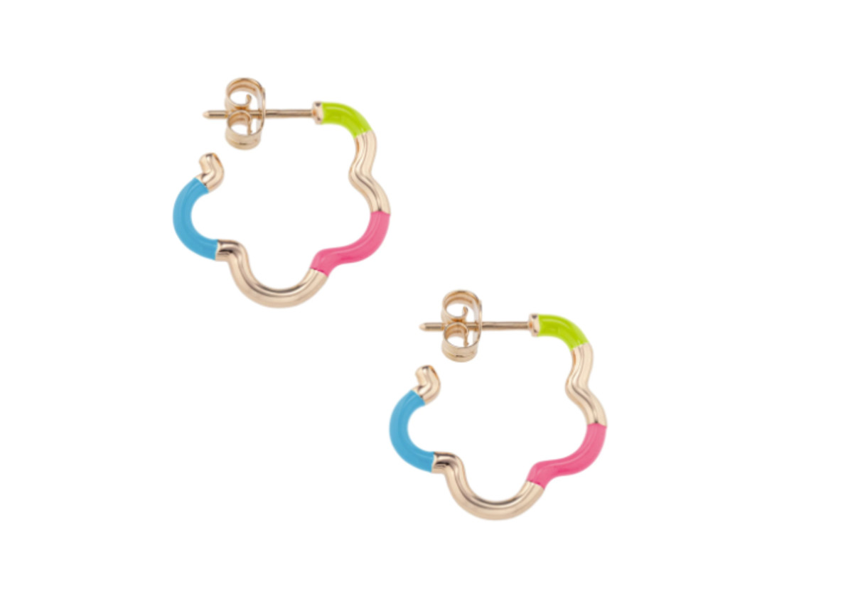Mini Pink Green and Blue Enamel Earrings in 9K Yellow Gold