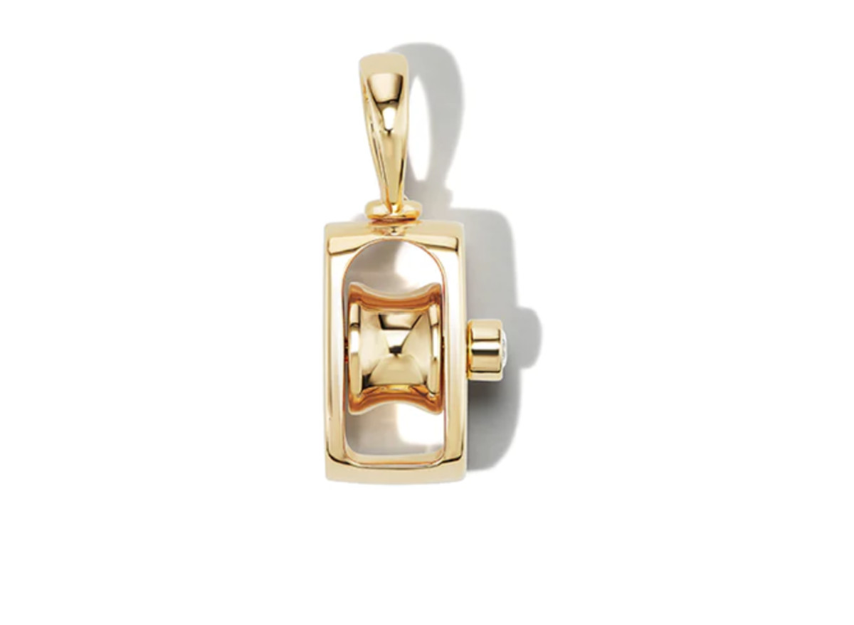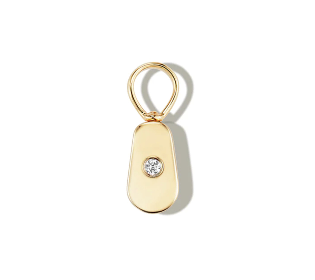 New from Marla Aaron: The Baby Pulley. This 14K and diamond charm is a functional “pulley” that can be added at any length to add additional charms, or to change the length of a necklace.