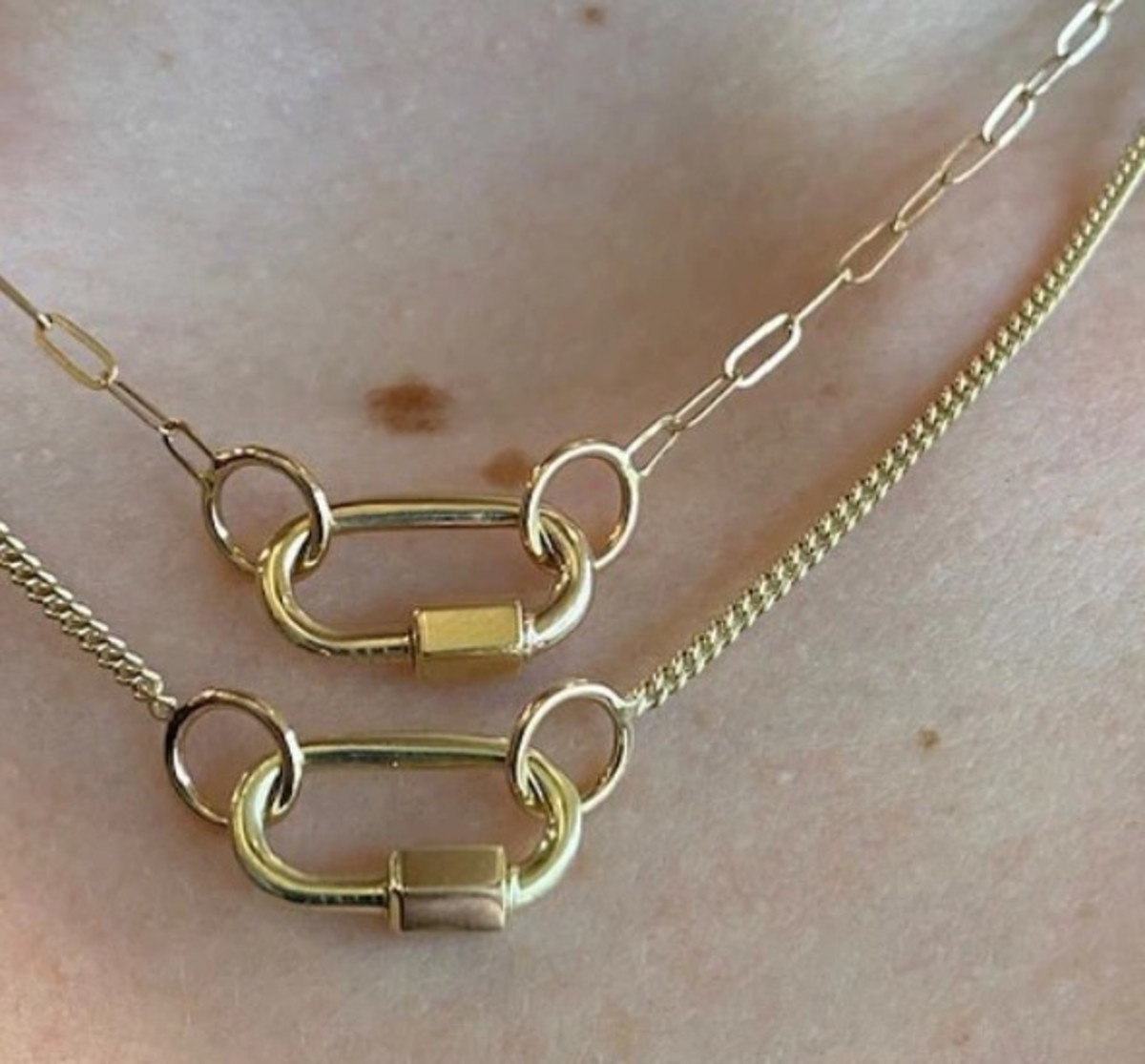 The Babylock in 14K Yellow Gold is Used as a Connector, a Clasp, and a Charm Holder. The Babylock Fits on All Chains, or Strands and is Ideal for a Necklace.