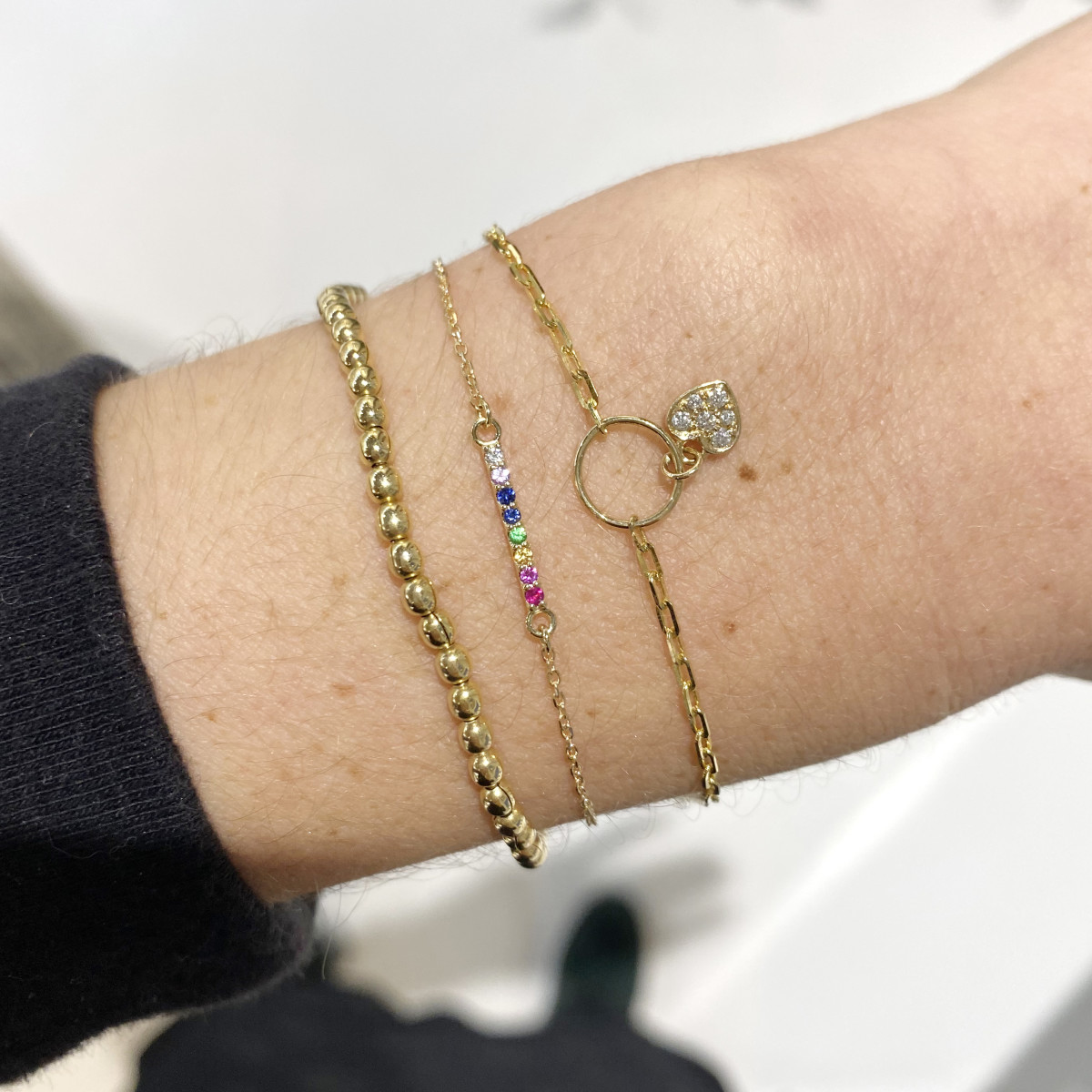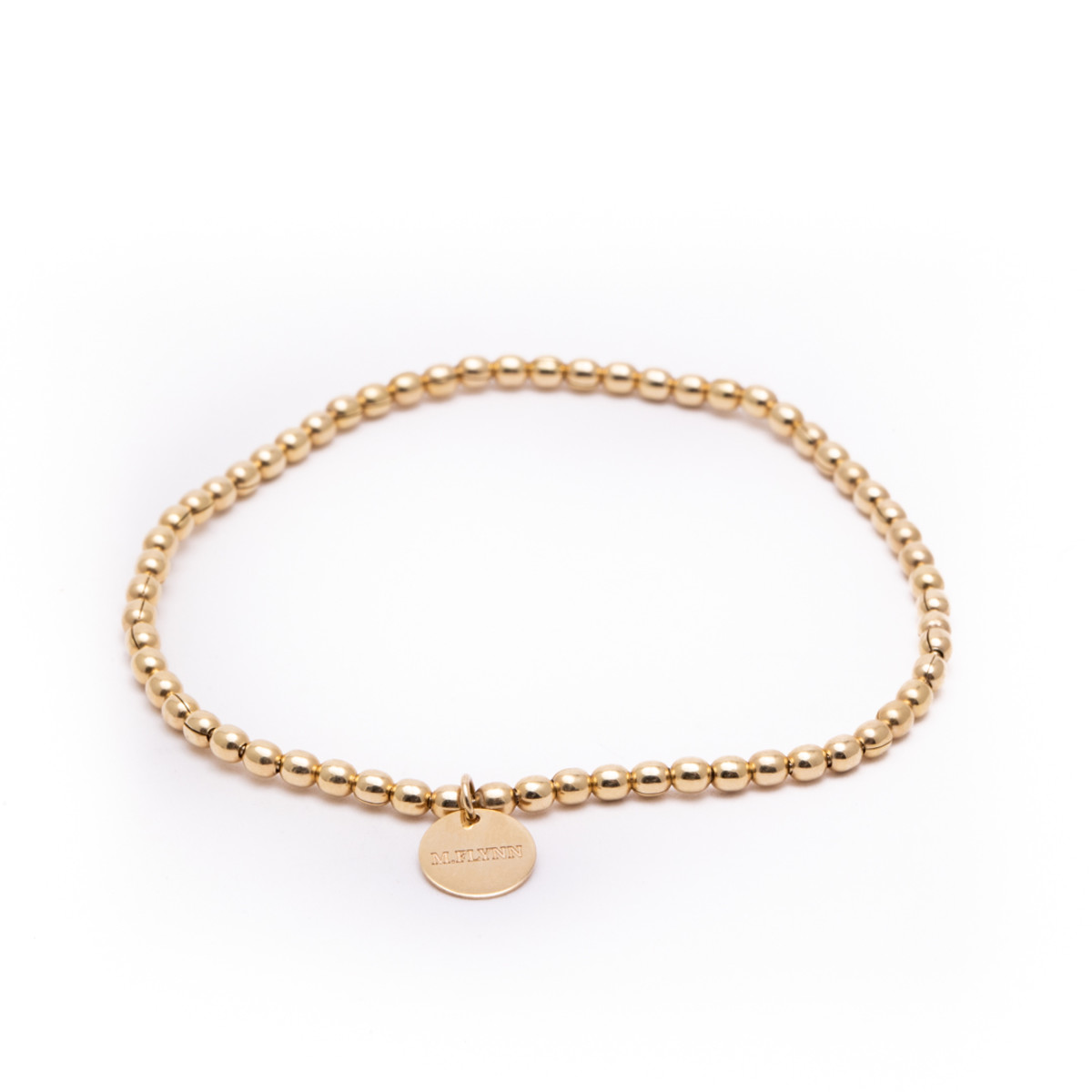 Stretchy gold bracelet, perfect for layering. This easy-to-wear bracelet features a subtle gold disc that can be engraved upon request.