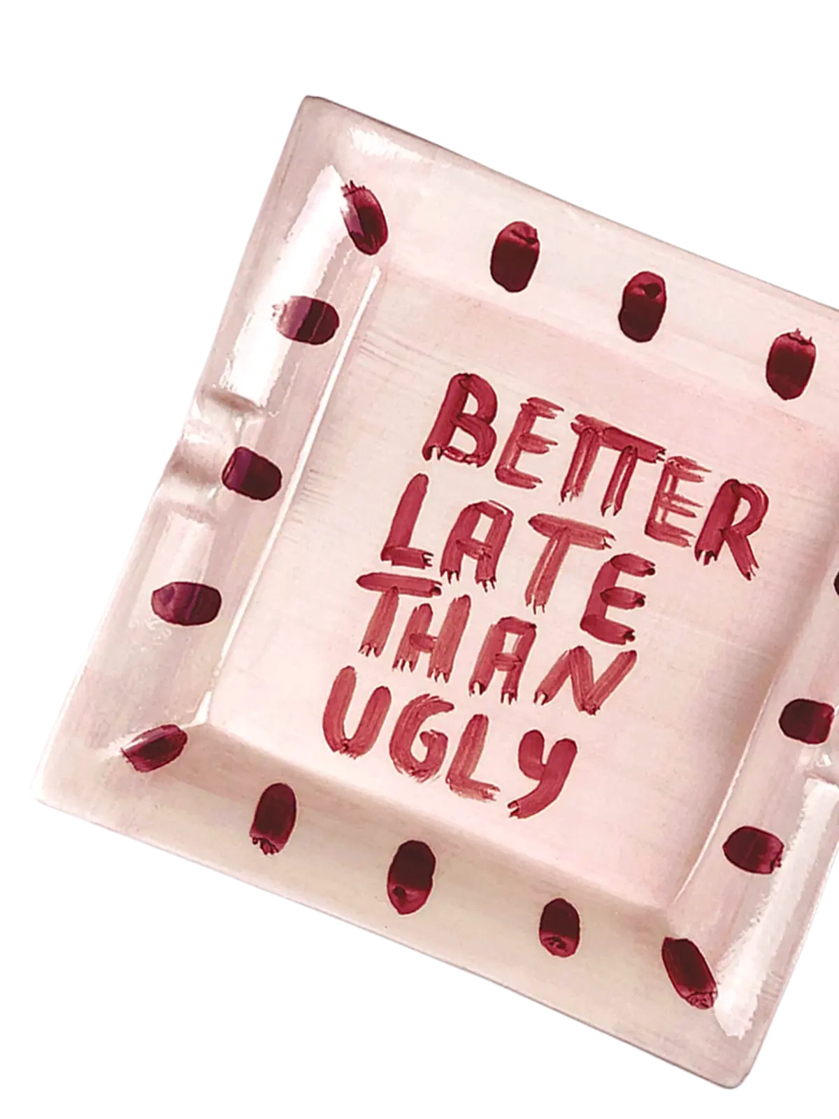 Make a statement with the “Better Late Than Ugly” Ashtray, a perfect blend of humor and practicality. Crafted from high-quality materials, this ashtray is not just functional but also a playful addition to your space. Featuring a bold and cheeky message, it’s ideal for your coffee table, bar, or outdoor patio. Whether you’re a smoker or just looking to add personality to your decor, this unique piece is sure to start conversations.