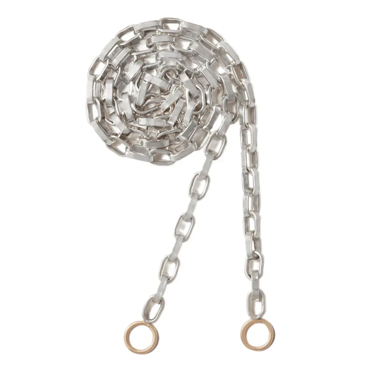 Make a bold statement with the Biker Chain Necklace in Polished Silver from M.Flynn. This 22-inch chain showcases a striking, industrial-inspired design featuring sleek, interlocking links with a high-polish finish. Perfect for adding edge to any outfit, this necklace is as versatile as it is eye-catching.