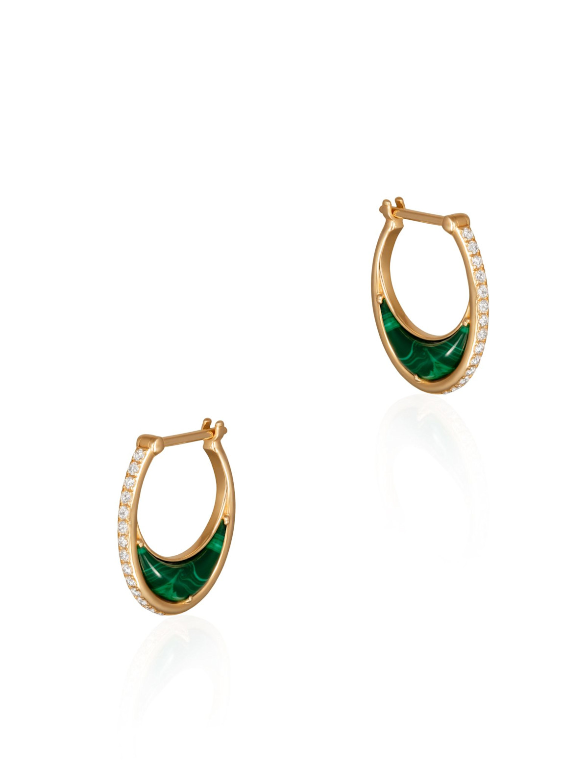 Playful yet polished, the Bloop Earrings Size 1 in Malachite make a bold statement in a petite size. Featuring rich green malachite stones with natural banding, these eye-catching studs add a pop of color and modern shape to your ear stack. Lightweight and easy to wear, the Bloop is perfect for mixing, matching, or standing out on its own. A fresh take on everyday style with a hint of edge.