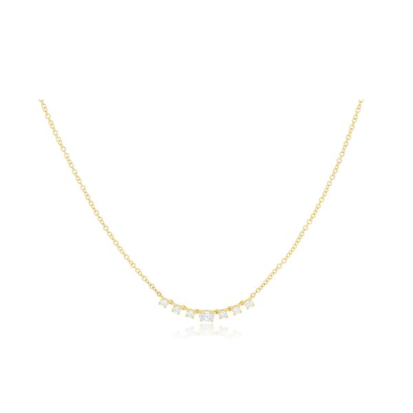 The Carrie Diamond Necklace by EF Collection features 6 round diamonds on either side of an oval cut diamond. We love this dainty, sparkly necklace for necklace layering!