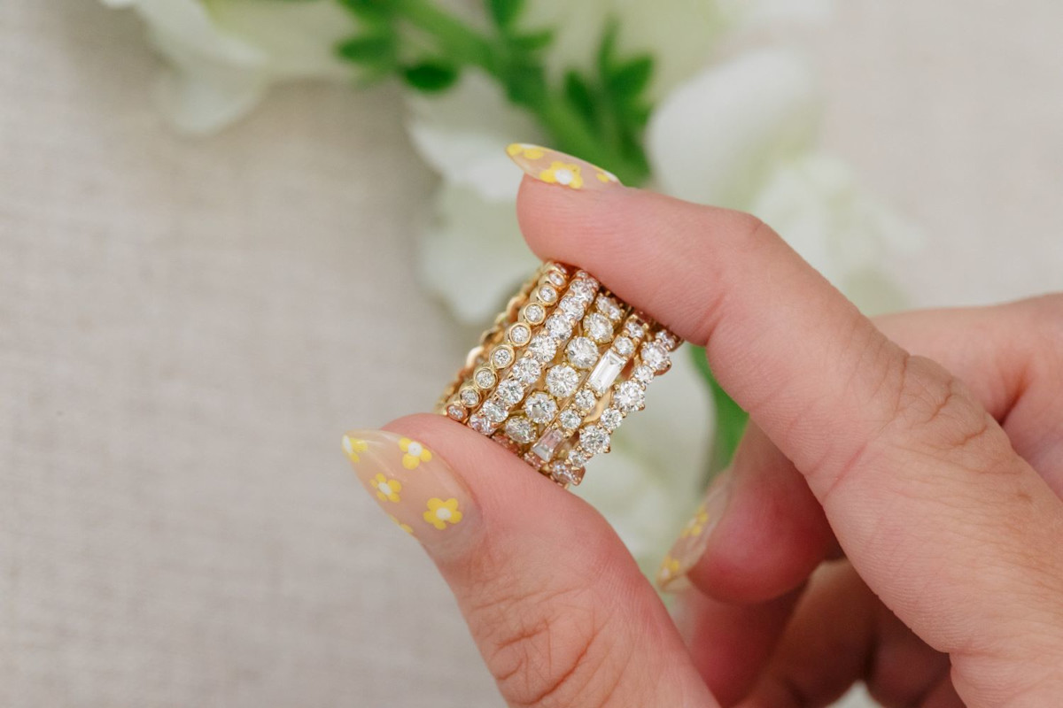 The Medium Size Of The Jade Trau Catherine Eternity Bands Featuring 18 Round Brilliant-Cut Diamonds Set In Jade Trau’s Signature 6-Prong Setting. This Band Sits Well Next To Engagement Rings and Ring Stacks or Looks Beautiful Worn Alone.