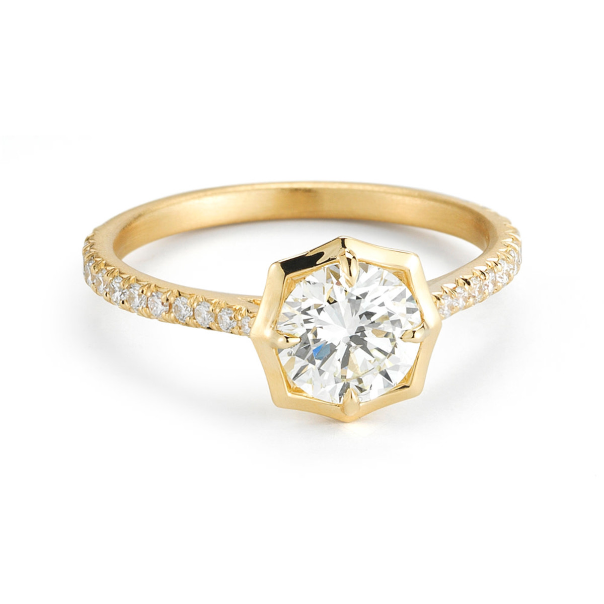 18-Karat Yellow Gold Engagement Ring Setting with Pave Diamonds