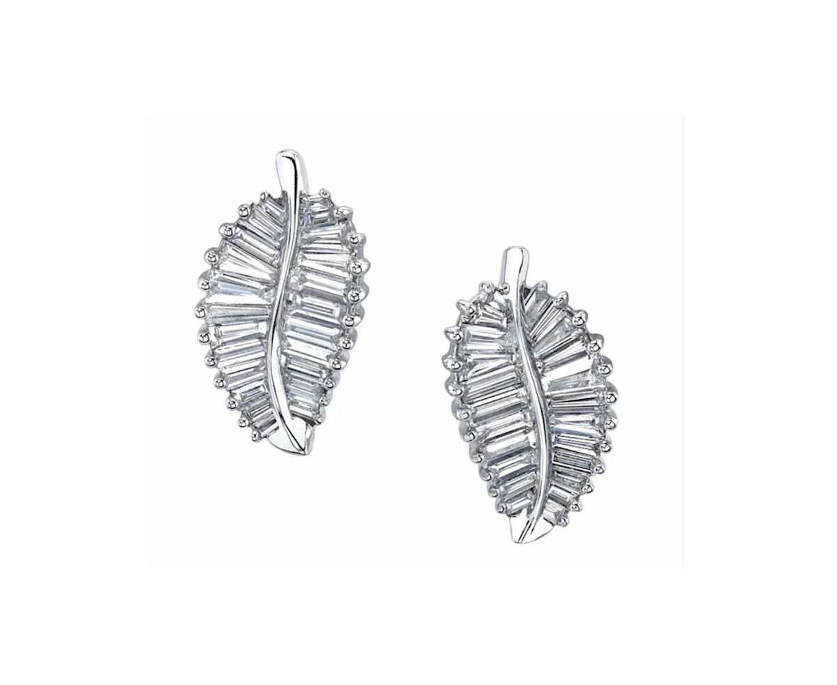 These Palm Leaf Studs by Anita Ko feature beautiful baguette diamonds for an everyday luxury diamond stud with a unique silhouette.