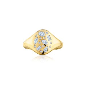 An M. Flynn favorite and bestseller, the Cobblestone Double Band Ring by Kwiat gives you the lux look of a ring stack in one ring. The cobblestone side of the band features diamonds burnished in 18K yellow gold, while the pave side features diamonds set in white gold, giving the ring an extra sparkly look.