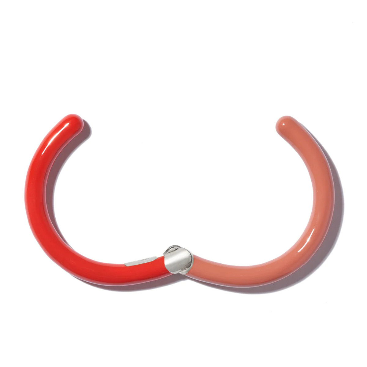 Hinged Cuffling with Red Enamel in Sterling Silver