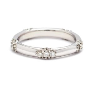 New from Anna Sheffield, the celestially inspired Cosmic Tiara Band’s subtle curve is composed of seven supersized, round diamonds—a delightful dose of sparkle worn singly, nested or in a suite.