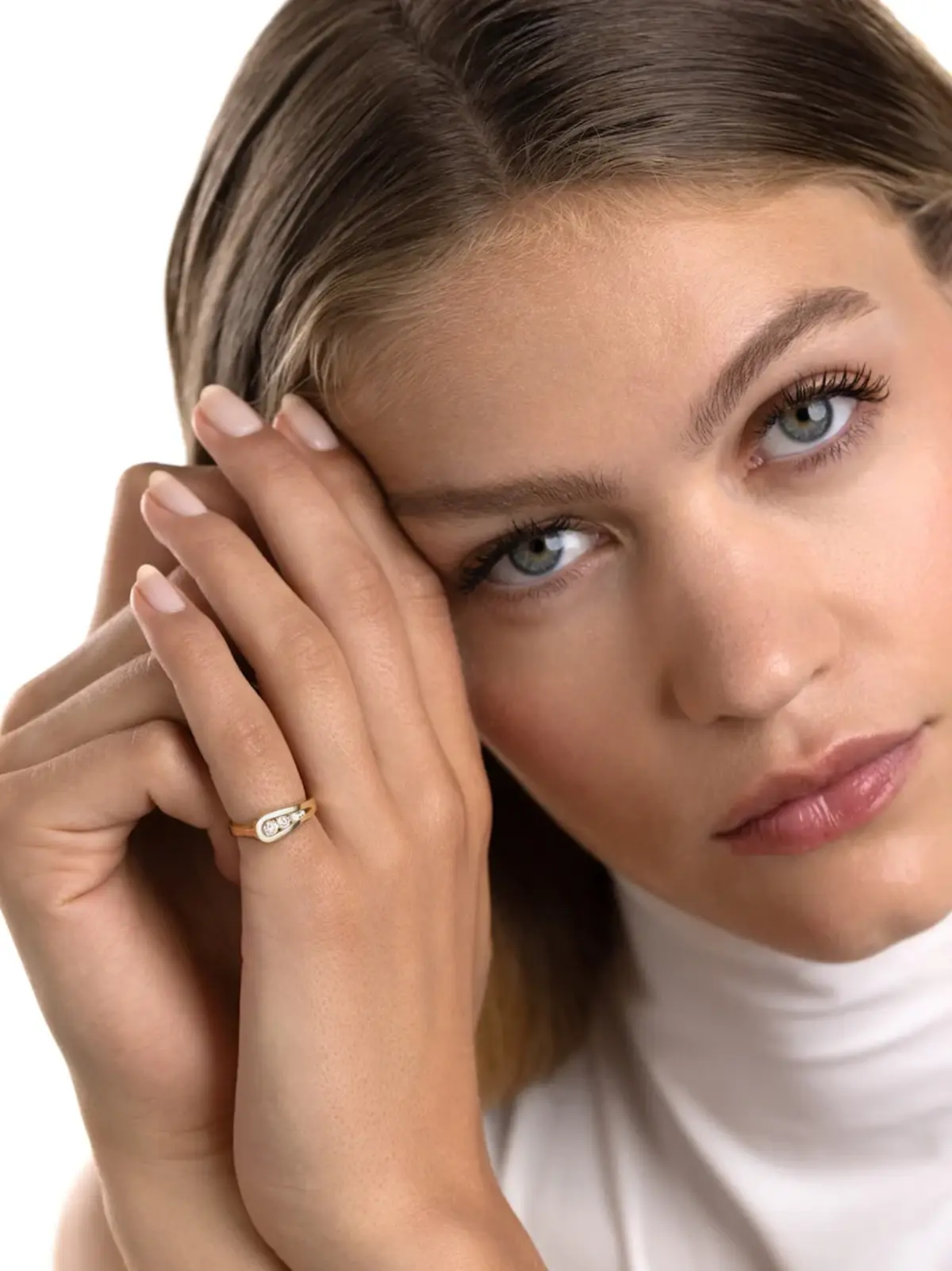 Add timeless elegance to your jewelry collection with the Daphne Pinky Ring in Yellow Gold with Diamonds. Crafted in luminous 14k yellow gold and adorned with sparkling white diamonds, this delicate yet bold pinky ring is the perfect balance of classic sophistication and modern edge. Ideal for stacking or wearing solo, the Daphne Ring adds a refined statement to any look. Handcrafted with precision, it’s a signature piece from Mflynn Jewelry designed to elevate your everyday style.