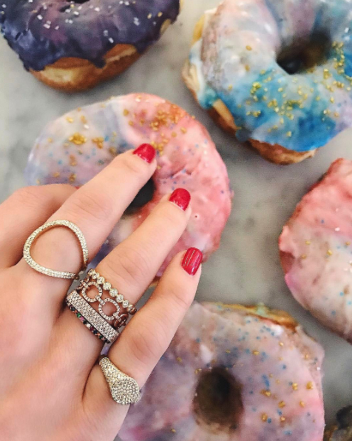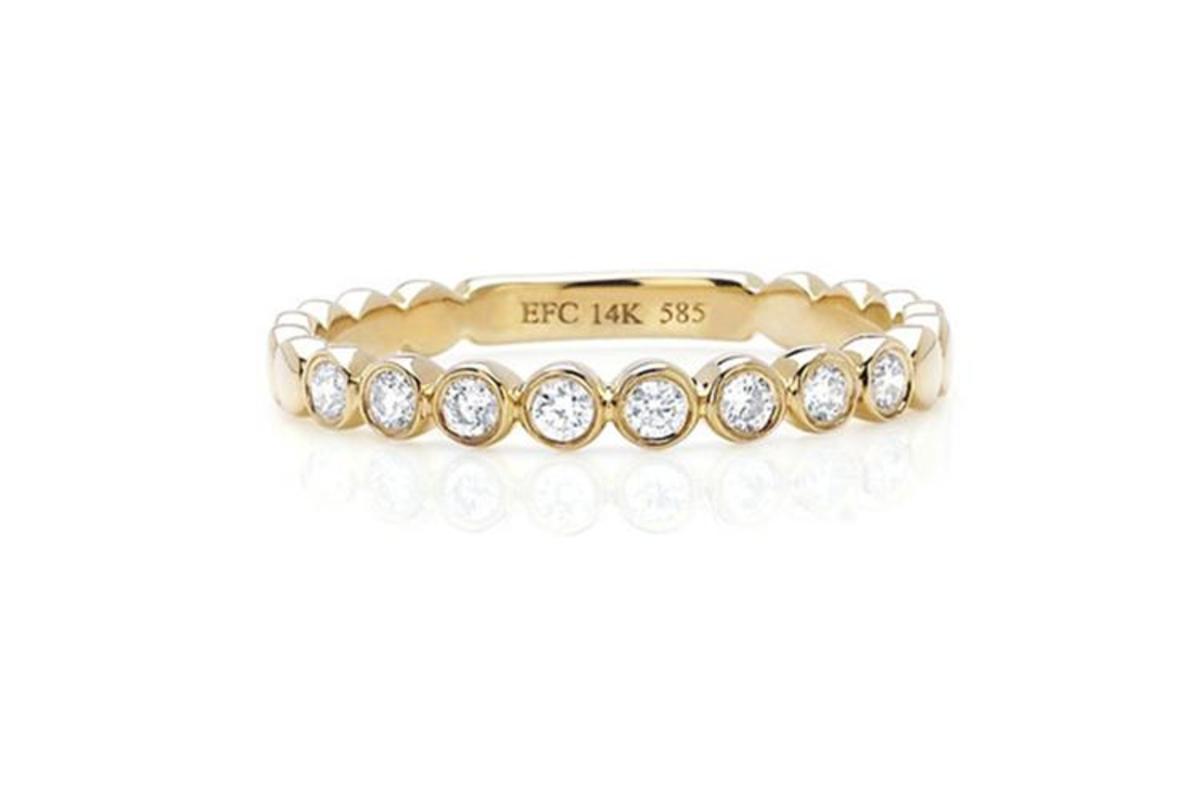 8 bezel set diamonds (0.18 tcw) set in 14k gold.