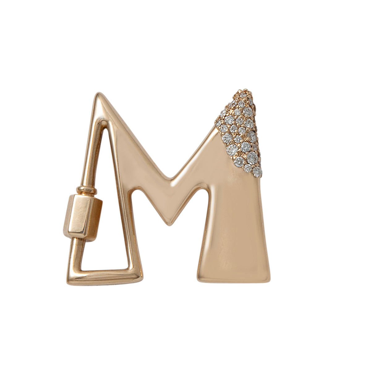 Diamond Dipped Letter M Lock in 14K Yellow Gold