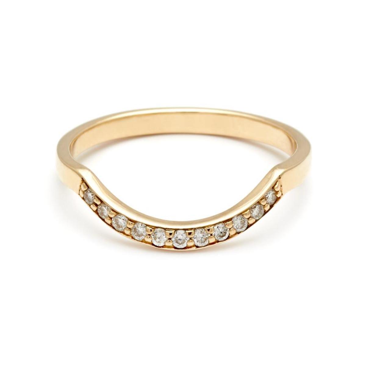This gently curved band accentuates the contour of almost any engagement ring while incorporating the beauty of a classic commitment band. This band has a very versatile shape that can be worn as a perfect match to the Rosette or Bea, as a stand alone band, or stacked with multiple rings.