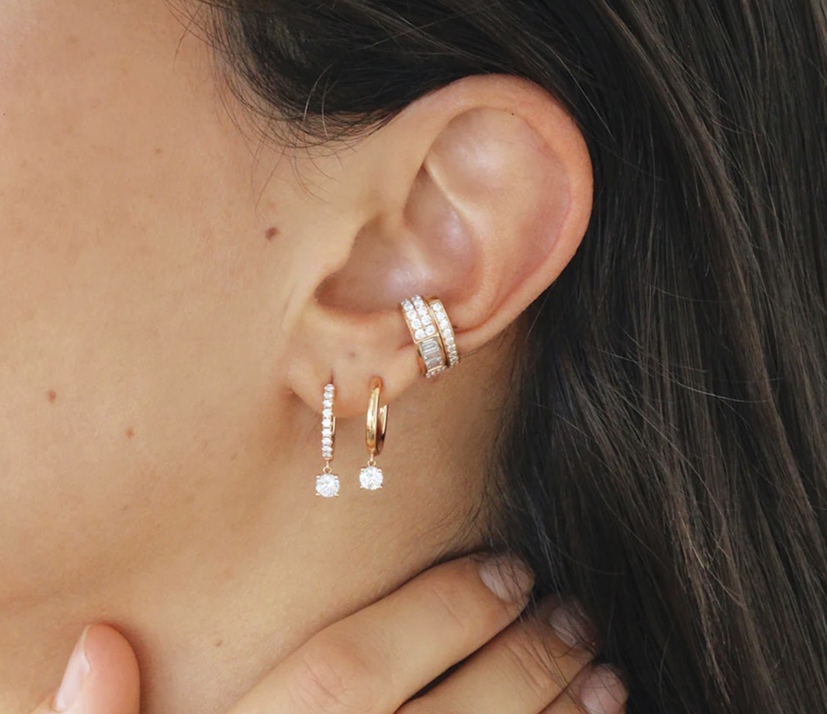 3 Row Diamond Bezel Huggies in 18K Yellow Gold