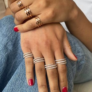 3 Row Diamond Bezel Huggies in 18K Yellow Gold
