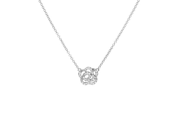 Diamond Rose Necklace in 14K White Gold
