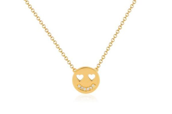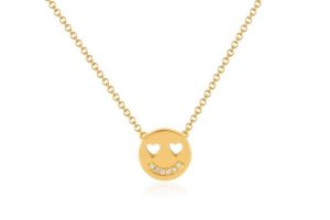 14K yellow gold smiley pendant necklace