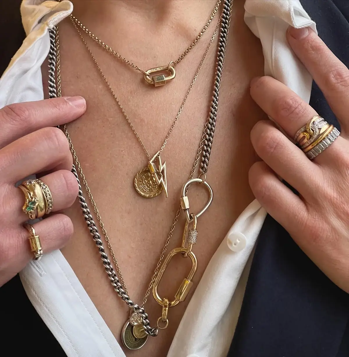 The two tones Drop Lock by Marla Aaron is the perfect charm holder shape, inspired by the teardrop and raindrop.