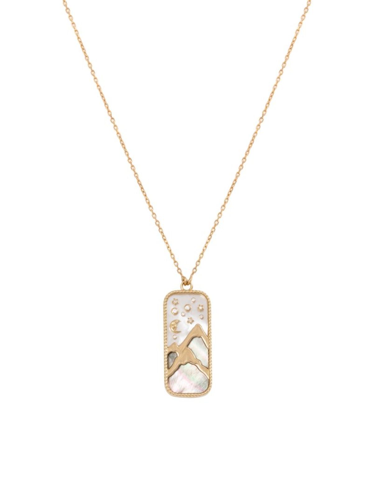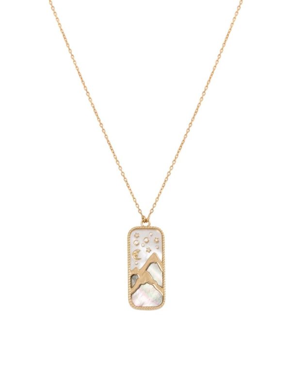 The Earth Element is a little tableau handmade from 18K yellow gold, set with 0.15 cts of white diamonds and is hand carved with white Mother of Pearl stone.