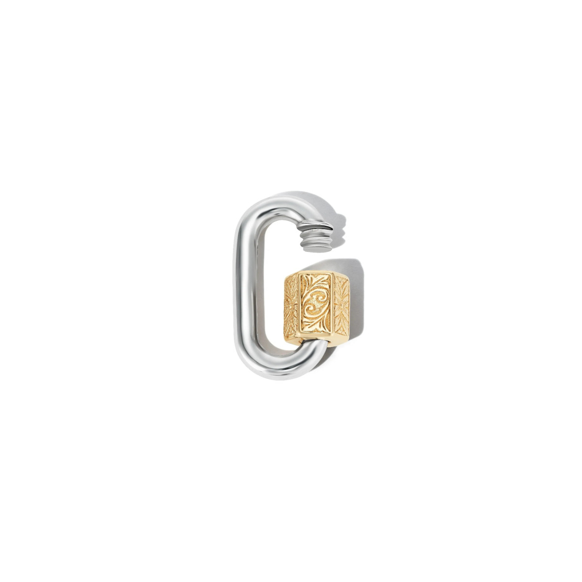 A bold twist on a Marla Aaron favorite. The Embossed Chubby Medium Lock features Marla’s signature mixed metal look with a fresh embossed texture that adds edge to any lock stack. Wear it with a chain or link it to your other locks—this one’s made to play.