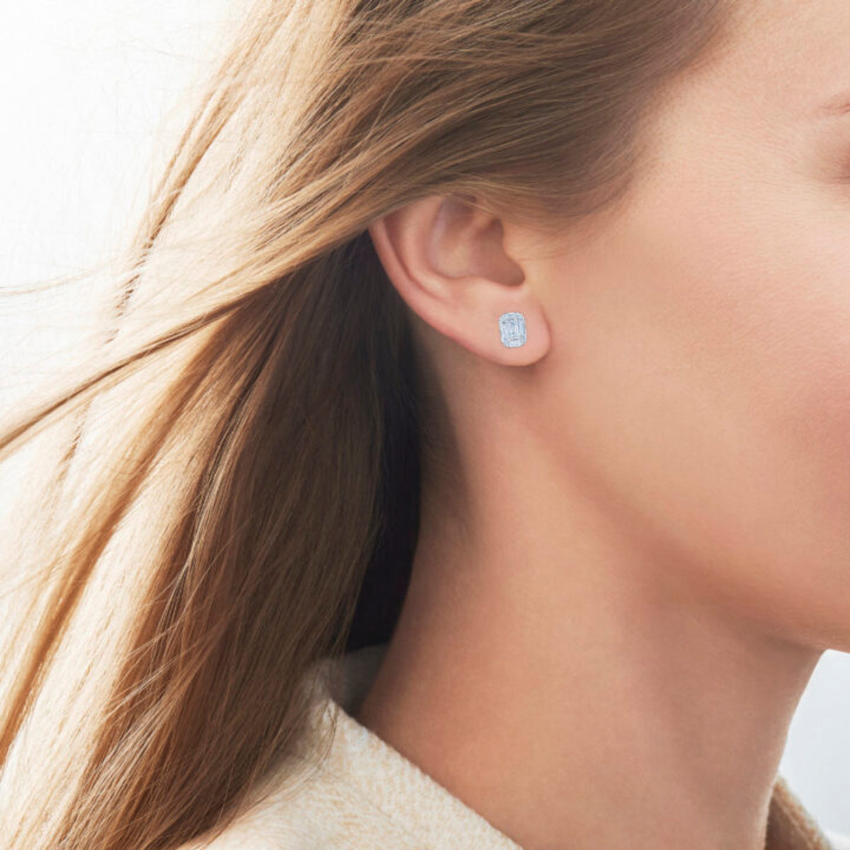 The Sunburst Stud Earrings feature round and emerald cut diamonds arranged together to give the illusion of one larger emerald cut diamond. We love how the mixed-cuts make the stud sparkle beautifully and frame the face with light!