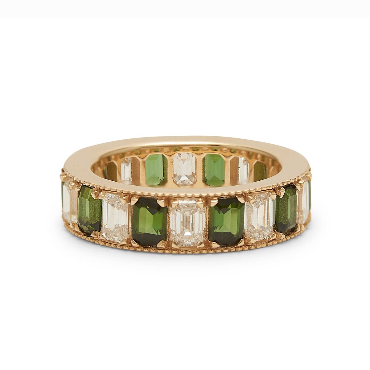 Introducing… The Emerald Cut Heirloom Band with Alternating Tourmaline and Diamond Baguettes.