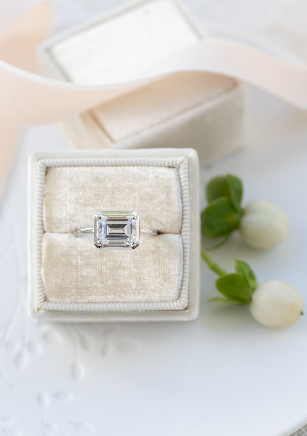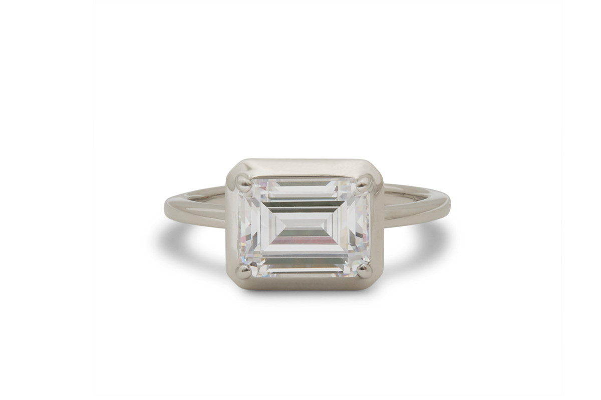 The Emerald Cut Illusion Engagement Ring, a part of M. Flynn’s engagement ring collection, is made-to-order in 14K or Platinum. Let us help you find the perfect center stone to create the ring of your dreams. M. Flynn works with natural diamonds.