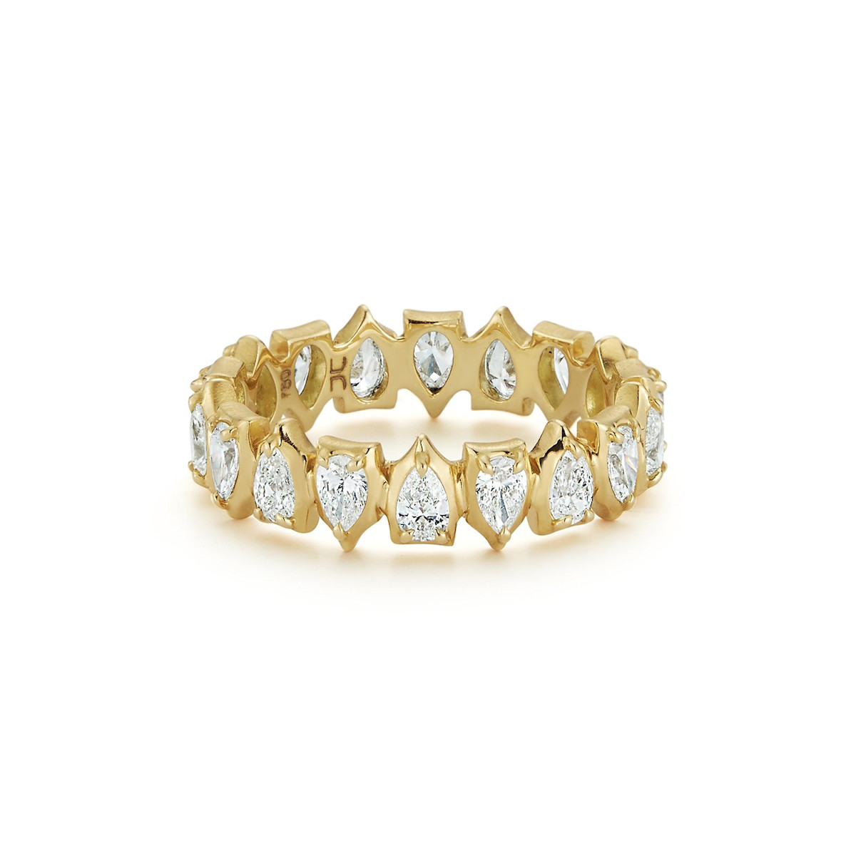The Envoy Eternity Band Features 18 Pear-Shaped Diamonds In Jade Trau’s Signature Alchemy Setting For an Eternity Band That Is a Statement Piece and Fills The Finger.