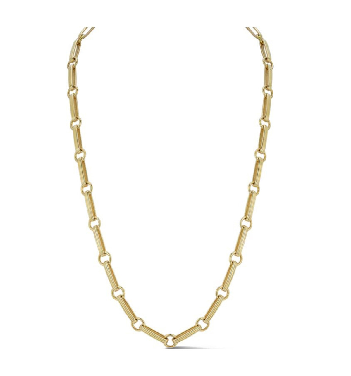 • 14K Gold Elongated Book Link Handmade 18″ Ernie Chain