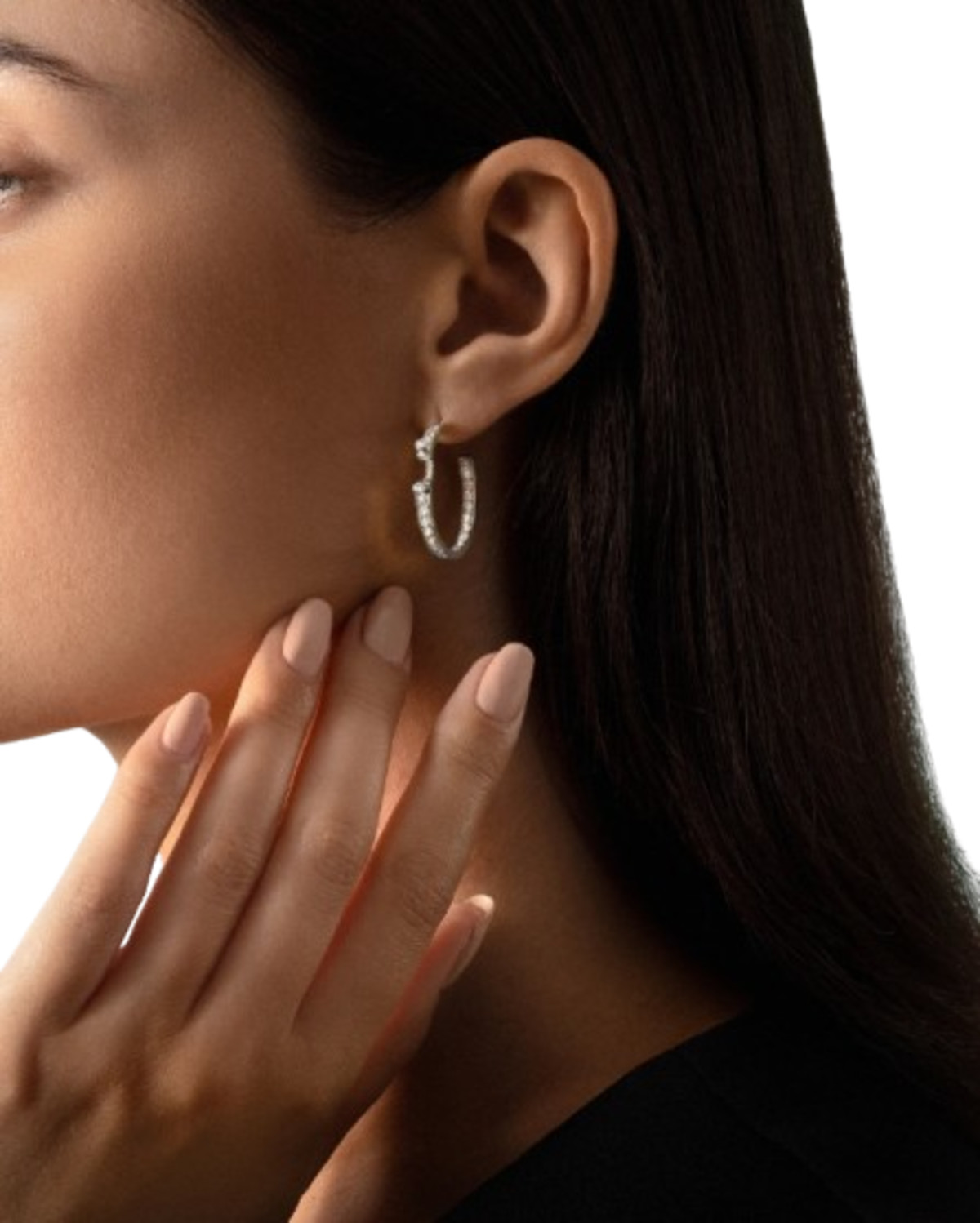 Sleek, sculptural, and endlessly elegant — the Eternity Tuxedo Moon Hoops in 18K White Gold are a modern twist on a timeless silhouette. Crafted in luminous 18K white gold, these crescent-shaped hoop earrings are adorned with a continuous row of shimmering diamonds, creating an eternity effect that catches the light from every angle. Their refined tuxedo-inspired design offers a bold yet balanced statement, perfect for elevating both everyday and evening looks.