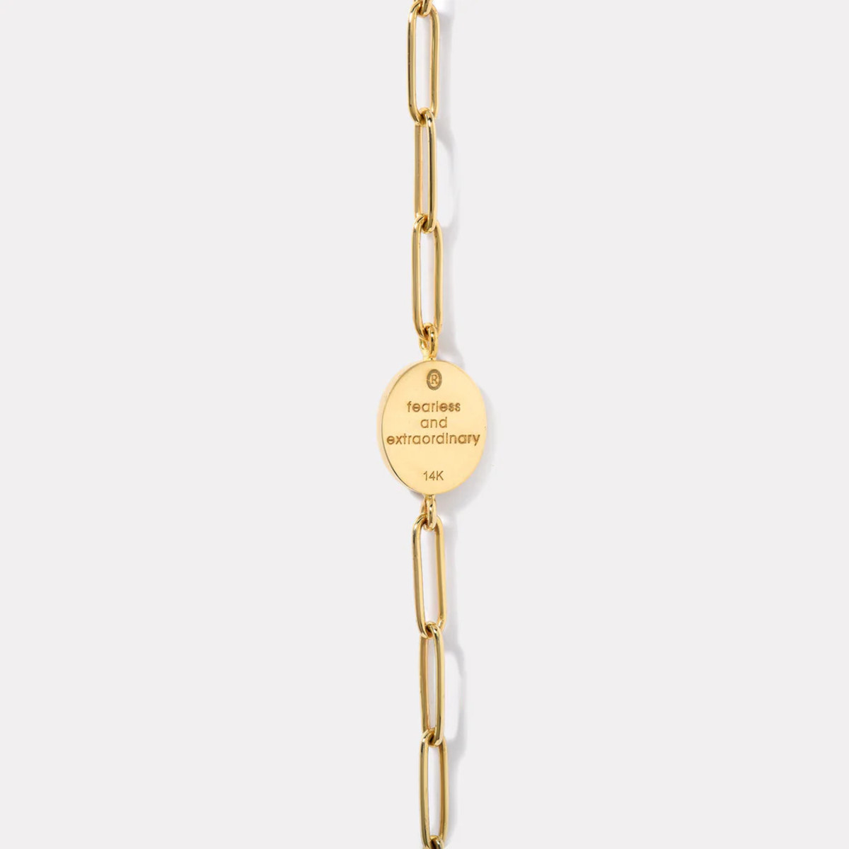 Back of bracelet pendant is engraved with the message ‘fearless and extraordinary’