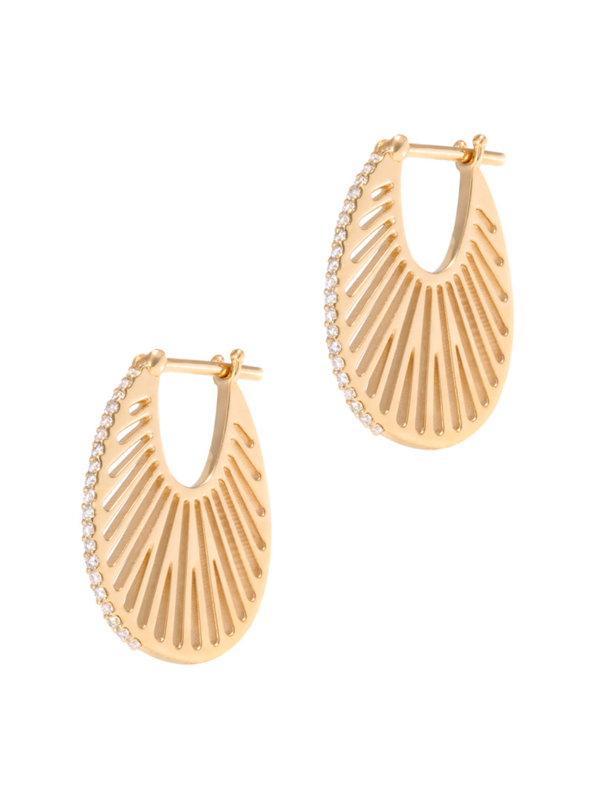 Large Flat Diamond Ray Hoops in 18K Yellow Gold