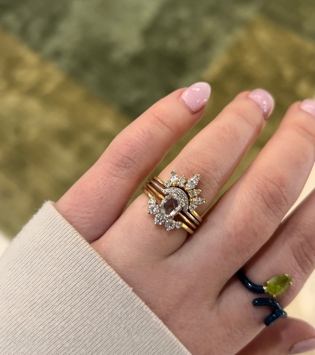 This ring is in stock in a size 6 and can be sized. Please text us with questions and to place a special order, 617-292-0079.