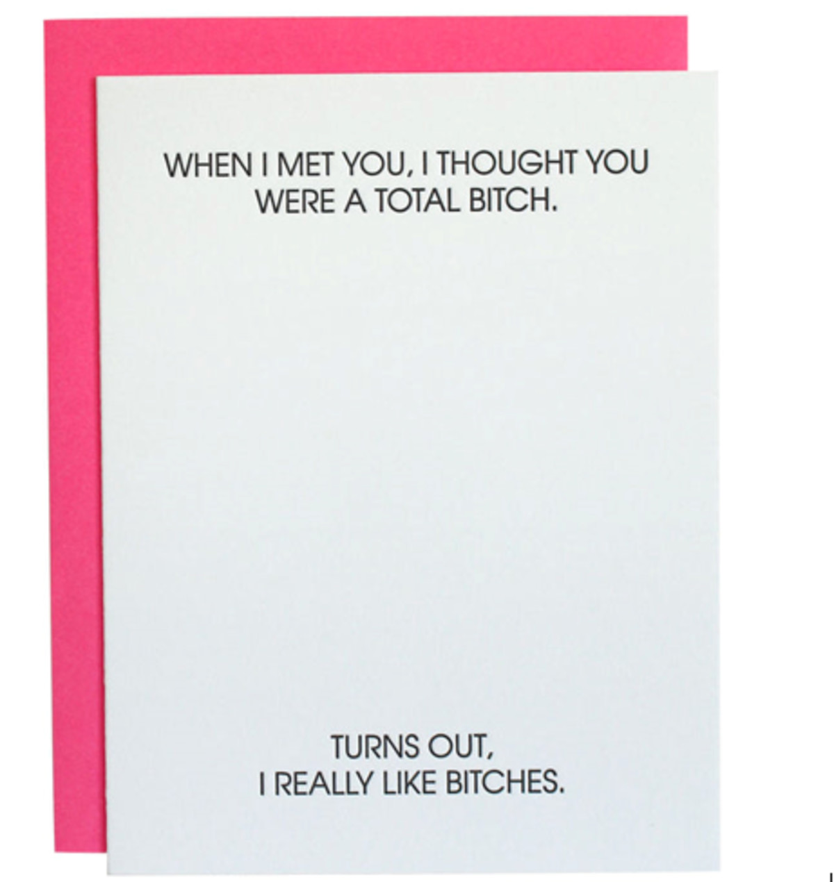 “I Thought You Were a Total Bitch” card is letterpress printed on a vintage printing press. Perfect for your sister, brother, boyfriend, girlfriend, mom, dad or grandma!
